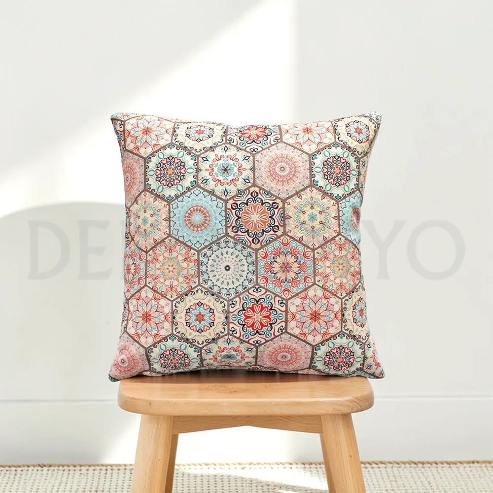 Etnik Altıgenler Kırlent ebatları kare seçeneği için 40×40 cm’dir.
