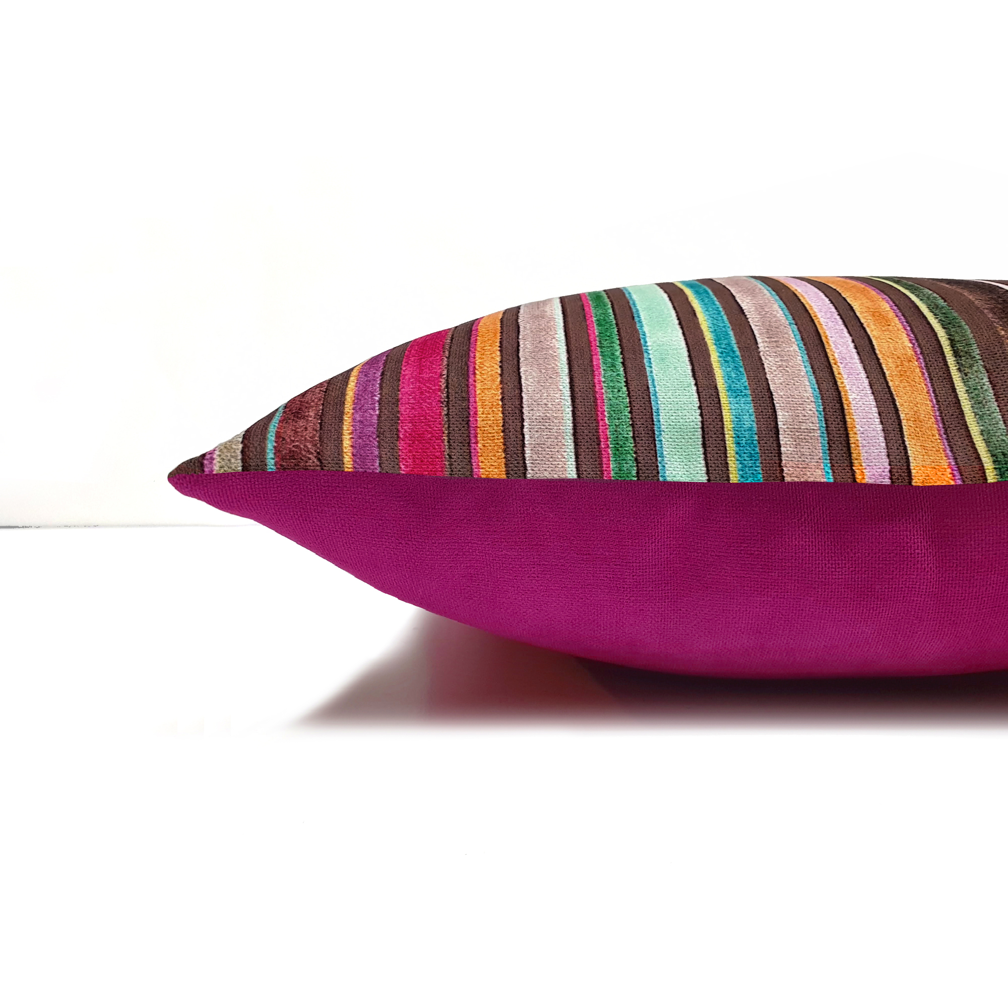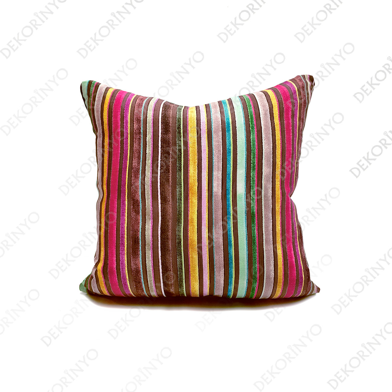 Kadife Görünümlü Renkli Çizgili Kırlent