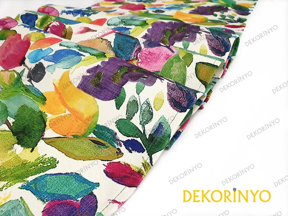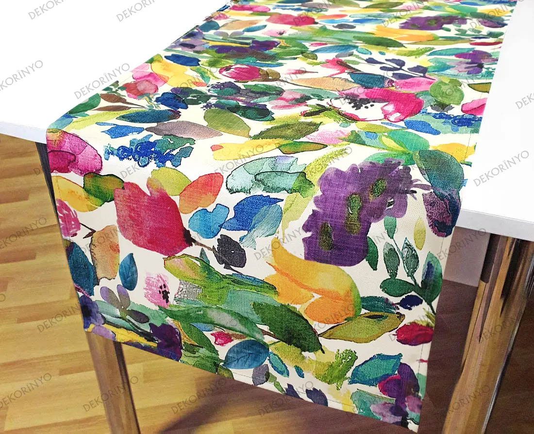 Tema: Renkli, Rengarenk, Suluboya, Sulu Boya, Dijital Baskılı Runner, Dikdörtgen Runner, Çiçek