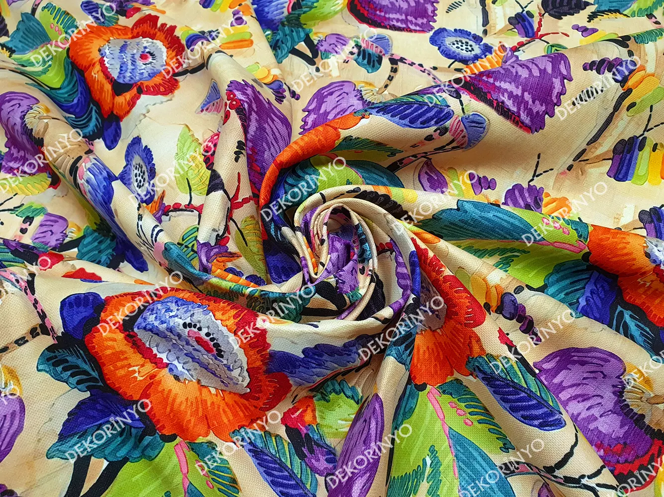 Yaban Çiçekleri Desenli Döşemelik Kumaş